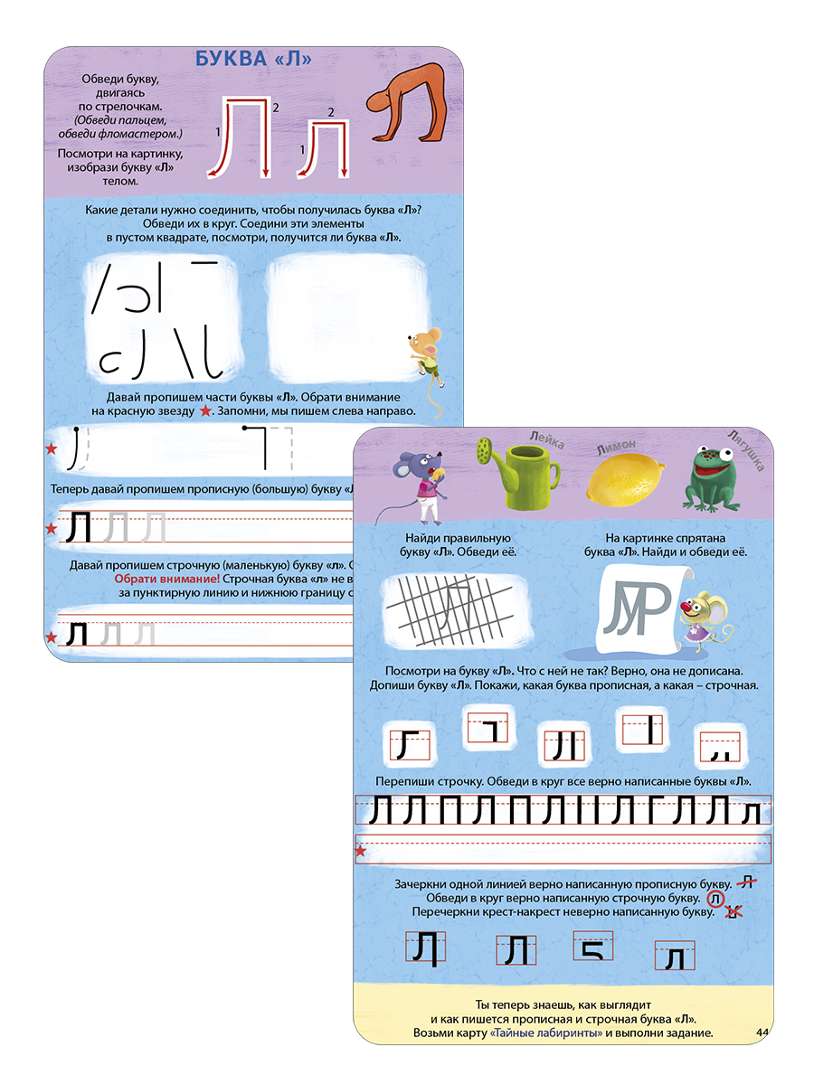 В наше время растет количество детей, испытывающих трудности при обучении чтению или письму в школе. Самые распространенные ошибки это – написание буквы в другую сторону, не с начала строки и не удерживая ее, списывание с ошибками, трудности с запоминанием последовательности написания букв и другие. Набор «Изучаем буквы с нейропсихологом» поможет вашему ребенку предупредить проблемы, связанные с овладением навыка чтения и письма, а также скорректировать уже имеющиеся. Комплект состоит из 39 двусторонних многоразовых карточек и карточки с инструкцией. В чем особенность набора: - Каждая карточка – это и комплекс упражнений, направленный на изучение и закрепление одной буквы. - Благодаря увеличенному формату карточек, ребёнку удобно с ними заниматься. - Карточки многоразовые – можно выполнять задания с помощью любого маркера на водной основе, стирать и выполнять снова! Набор состоит из карточек с упражнениями: - На узнавание букв (перевернутых в пространстве, зашумленных (спрятанных под штриховку), правильно/неправильно написанных) и элементов, из которых они состоят. - На закрепление правильной последовательности написания букв (прописной и строчной). - На различение оптически сходных букв, прямого и зеркально их изображения. - На удержание строки при написании букв (закрепление понятий верх-низ-начало строки). - На закрепление зрительного образа буквы с помощью специальных упражнений с мелкой и крупной моторикой. Важно знать родителям: - Предназначен для детей в возрасте от 4 лет. - Для работы с карточками можно использовать любой фломастер на водной основе, который легко стирается, что позволяет выполнять задания много раз. - Можно использовать как отдельно, так и в комплекте с набором «Изучаем звуки с нейропсихологом». - Рекомендован для индивидуальных занятий дома и в поездках, для занятий в дошкольных учреждениях (для логопедов, воспитателей и др.).