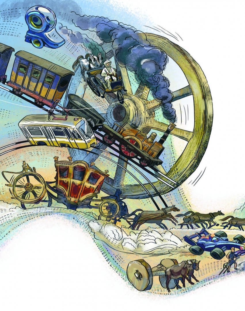 Новая книга серии детских энциклопедий с Чевостиком расскажет об истории наземного транспорта. Путешествуя во времени вместе слюбимыми героями, вы узнаете, как наши предки перевозили тяжёлые грузы и передвигались на дальние расстояния, разберётесь, как устроен паровой двигатель и двигатель внутреннего сгорания. Прокатитесь на карете, побываете на «Формуле-1» и увидите, как устроен конвейер. А ещё выучите дорожные знаки и правила дорожного движения.