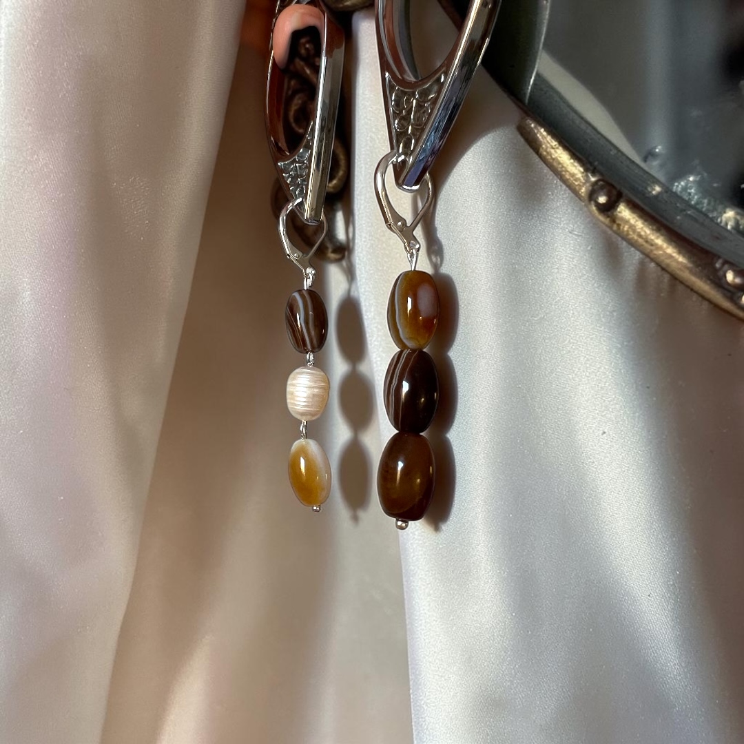 Брошь-булавка. Агат, Жемчуг