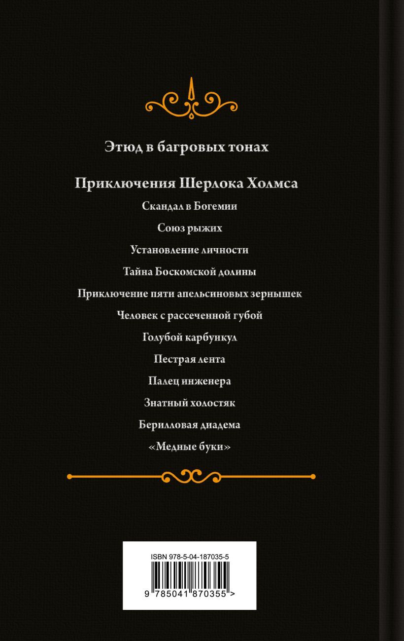 Это издание является первой книгой о Шерлоке Холмсе в коллекционных изданиях «Ярких страниц», всего будет 4 тома. В него вошли роман «Этюд в багровых тонах», а также цикл рассказов «Приключения Шерлока Холмса» с комментариями от переводчика Кирилла Савельева.