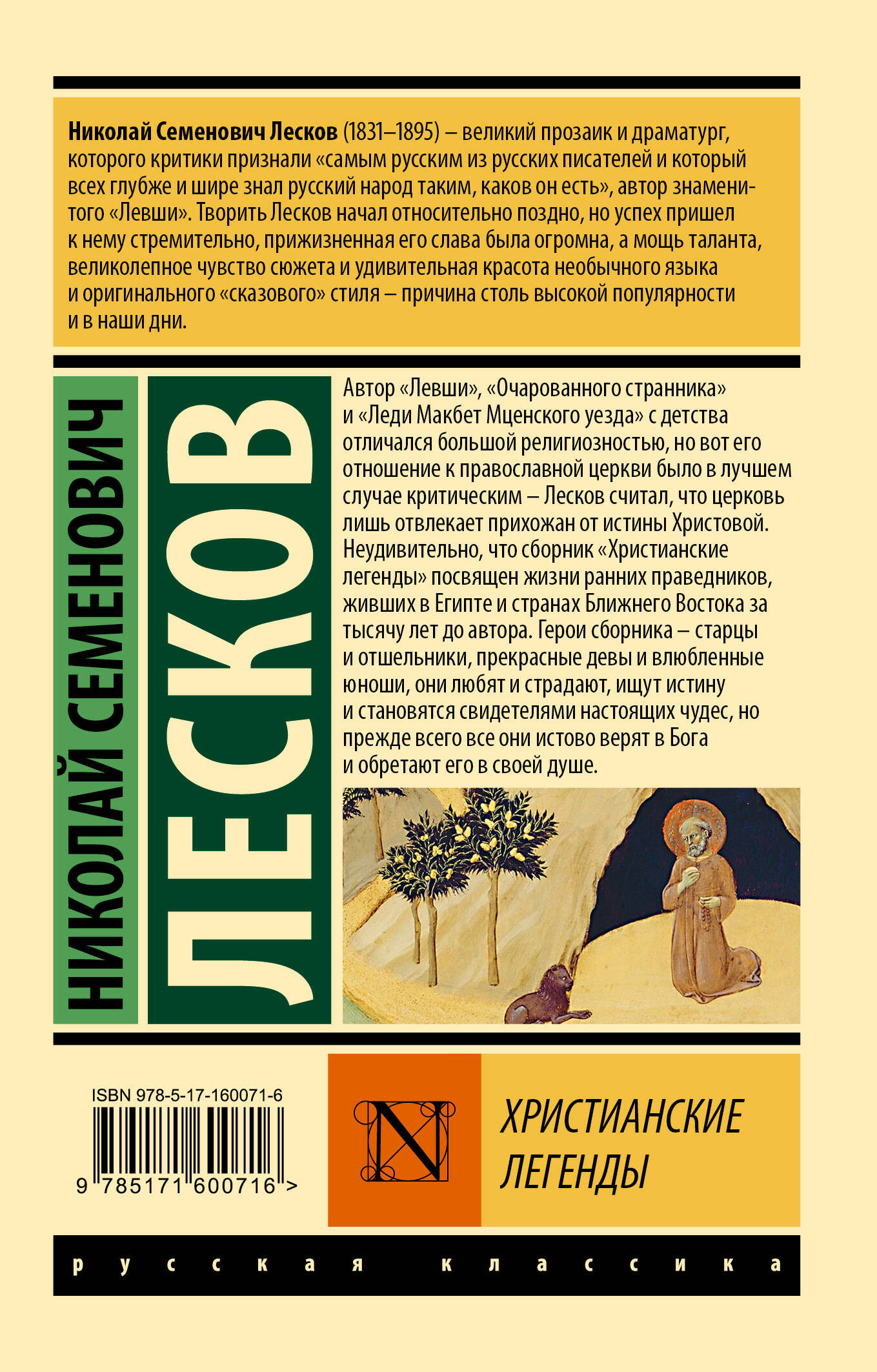 Автор "Левши", "Очарованного странника" и "Леди Макбет Мценского уезда" с детства отличался большой религиозностью, но вот его отношение к православной церкви было в лучшем случае критическим — Лесков считал, что церковь лишь отвлекает прихожан от истины Христовой. Неудивительно, что сборник "Христианские легенды" посвящен жизни ранних праведников, живших в Египте и странах Ближнего Востока. Герои сборника — старцы и отшельники, прекрасные девы и влюбленные юноши, они любят и страдают, ищут истину и становятся свидетелями настоящих чудес, но прежде всего все они истово верят в Бога и обретают его в своей душе.