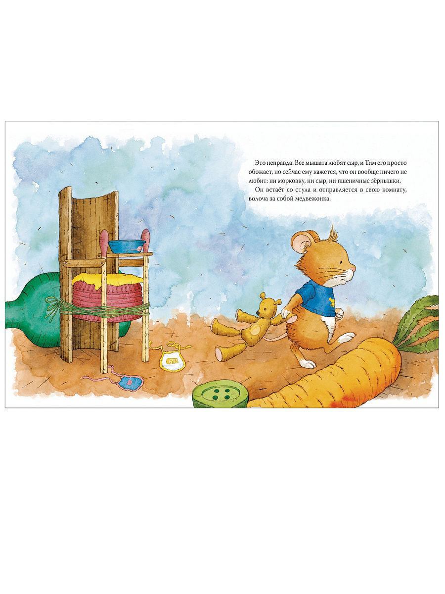 Серия книг про смешного и обаятельного мышонка Тима поможет малышам понимать, признавать и называть свои чувства, научиться общаться со сверстниками и справляться с трудными ситуациями. Сегодня мышонок Тим не хочет есть, отказывается даже от своего любимого морковного супа. "Зачем вообще нужно есть" - ворчит мышонок. И тут приходит замерзший кузнечик. Он поможет мышонку съесть все до крошки.