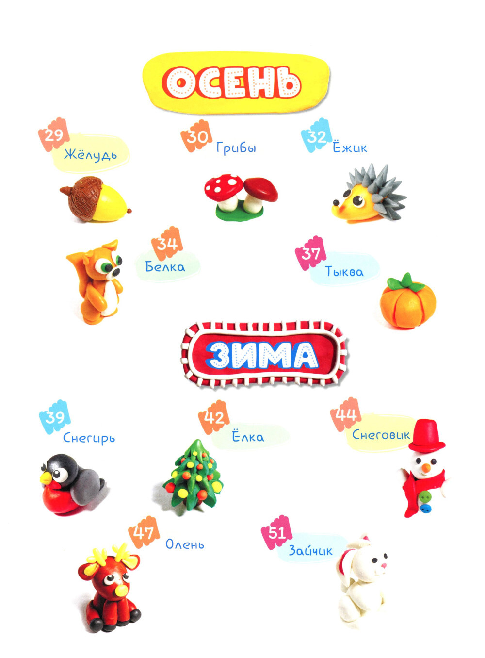 Знаете ли вы, что лепка из пластилина - одно из лучших занятий для развития мозга ребёнка? Да-да! В процессе лепки развиваются мелкая моторика, речь, память, внимание и мышление, происходит активация работы мозга. Эта книга станет вашим помощником в развитии ребёнка. Здесь вы найдёте подробные инструкции по лепке 54 фигурок различного уровня сложности. Первая часть книги предназначена для самых маленьких и построена по принципу «от простого к сложному». В ней четыре темы - это времена года. Если вы совместите обучение лепке и изучение времён года, то занятия окажутся вдвойне полезнее. Вторая часть книги - это лепка различных животных с шести материков, из морей и океанов. На обороте обложки вы найдёте карту. На ней ребёнок сможет разместить свои поделки и таким образом запомнить, кто где обитает. Приятным бонусом станут 54 подробных видеоурока по лепке фигурок из книги. С ними занятия станут ещё увлекательнее.