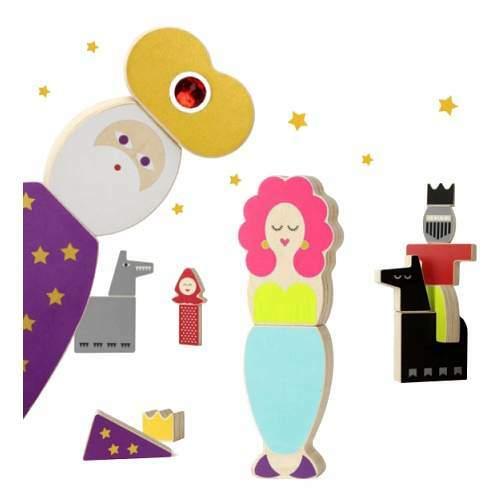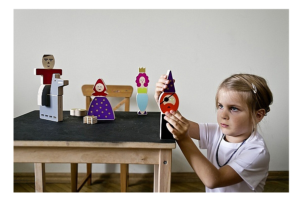 Набор кубиков. Меняйте блоки и составляйте сказочных персонажей. Красная шапочка и серый волк, принц на коне, принцесса, волшебник, злая королева... вариантов гораздо больше! Устройте маленький спектакль по вашей любимой сказке или придумайте свою.