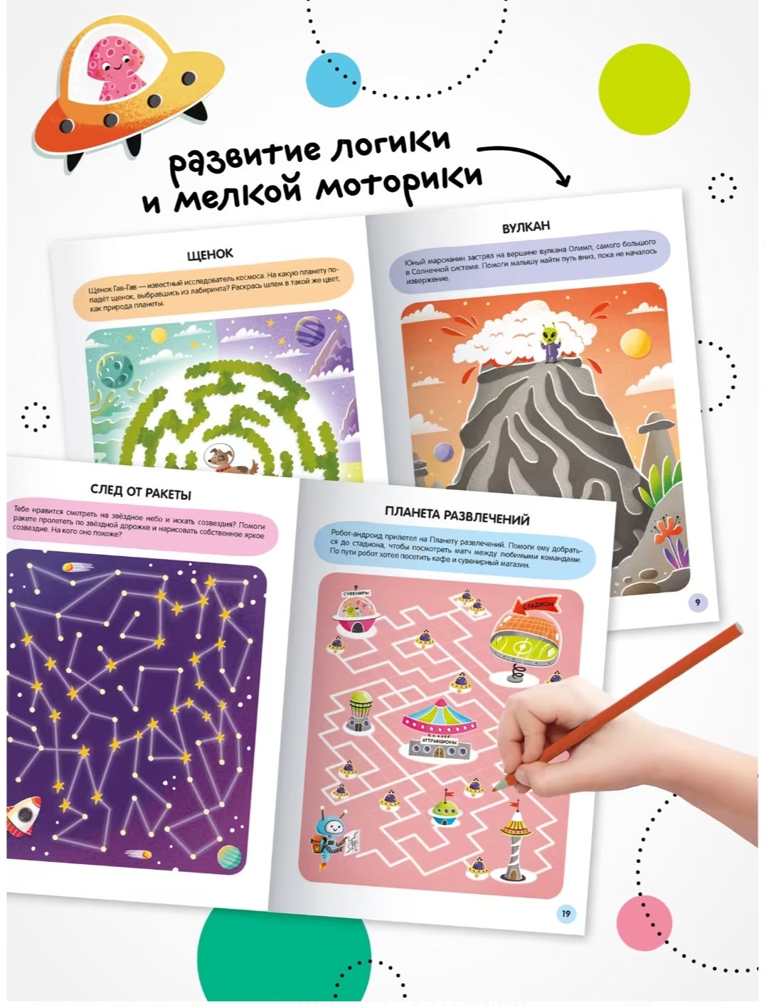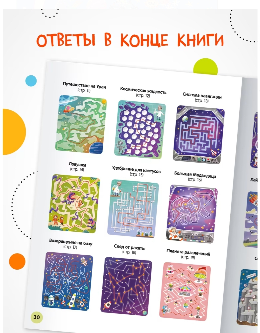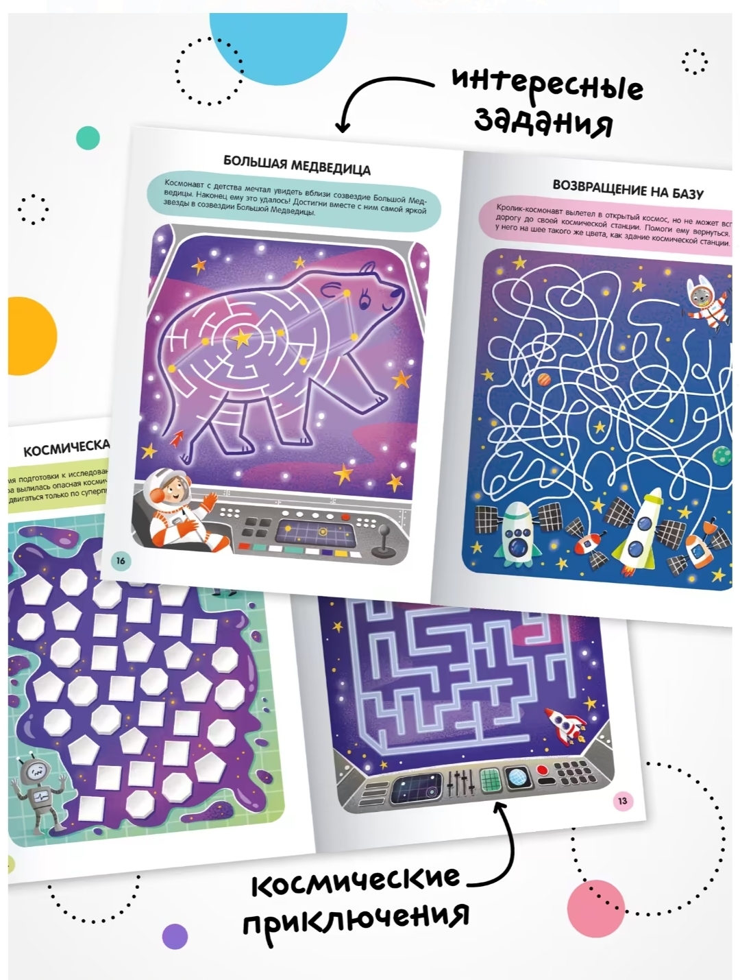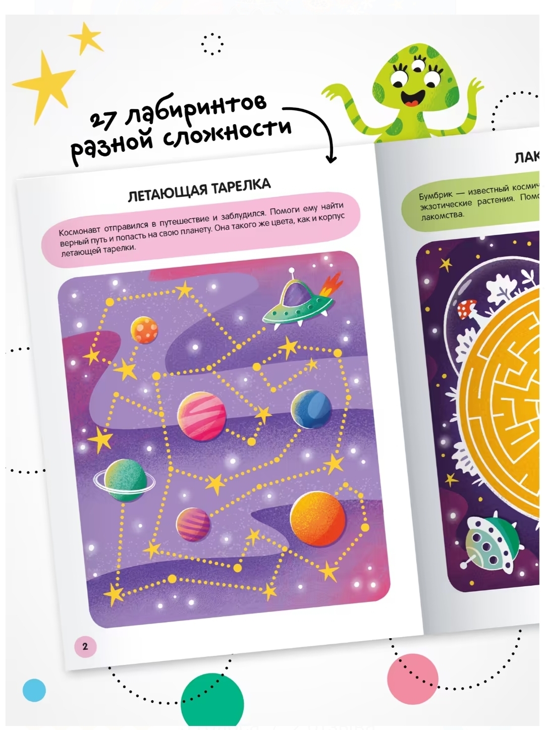 Книга «Космос» серии «Весёлые лабиринты» — отличный выбор для юных любителей ходилок и бродилок. В книге вы найдете 27 лабиринтов разных типов и уровней сложности с ответами. Ребенок сможет сможет покататься на луноходе, починить ракету, избежать встречи с космическими пиратами и многое другое. А еще лабиринты помогают развитию мелкой моторики, внимательности и мышления.