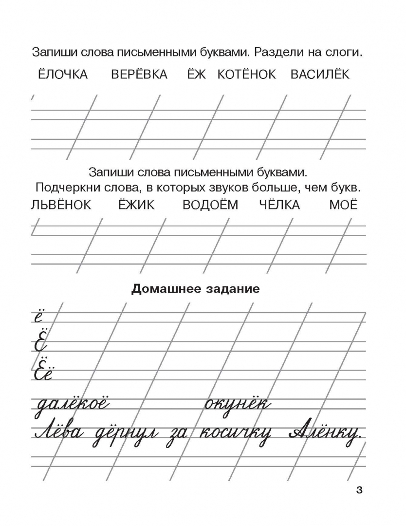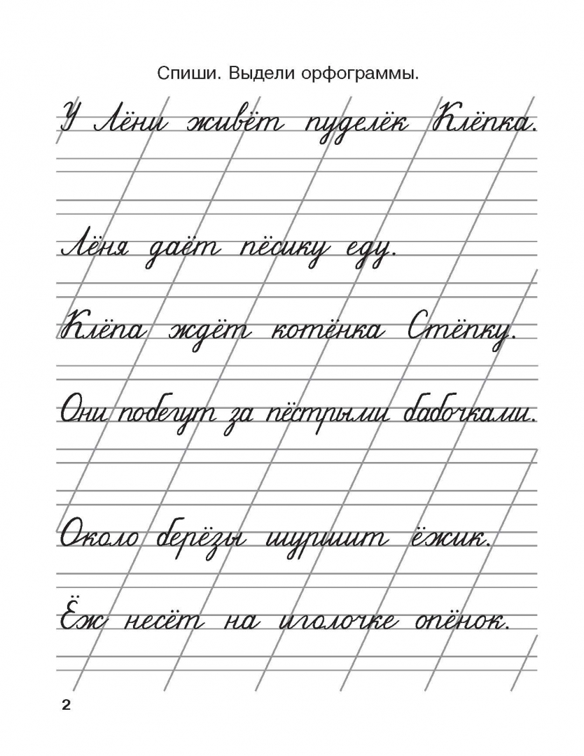 Представленные задания - "обведи элементы букв", "пропиши букву", "выдели орфограмму", списывание с печатного текста, письмо под диктовку - необходимы для отработки каллиграфического почерка и развития мелкой моторики. Каждая буква алфавита дана в виде нескольких простых элементов. На первом этапе ученик обводит напечатанные элементы букв, затем пишет их самостоятельно. Работа по этим прописям даёт очень высокие результаты. Прописи можно использовать для коллективной работы в классе и для индивидуальной работы дома.