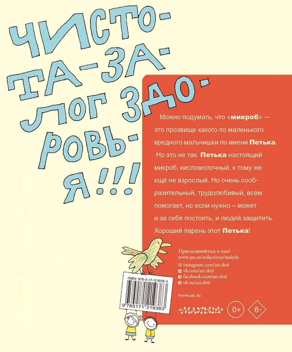 «Остер – малышам» - это серия книг Григория Остера, адресованных детям младшего дошкольного возраста. Это добрые сказки про умненьких малышей, которые умеют размышлять и любят необычные игры. Петька-микроб – это не прозвище. Петька действительно микроб, очень полезный, работает с молочными продуктами, превращает их в кисломолочные. Но помимо этого помогает учёным изучать разные частицы, дружит с Ангинкой (тоже, кстати, бациллой) и совершает много полезных дел. В книгу вошли избранные истории.