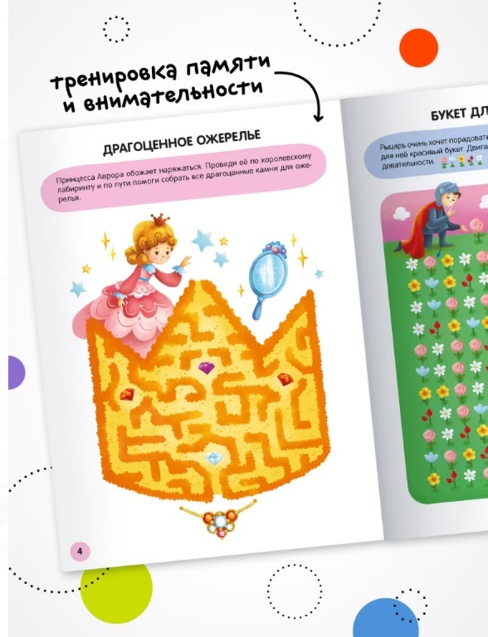Книга «Принцессы» серии «Весёлые лабиринты» — отличный выбор для юных любителей ходилок и бродилок. В книге вы найдете 27 лабиринтов разных типов и уровней сложности с ответами. Ребенок сможет спасти принцессу из башни, прогуляться по сказочному домику, помочь русалке добраться до жемчужины и многое другое. А еще лабиринты помогают развитию мелкой моторики, внимательности и мышления.