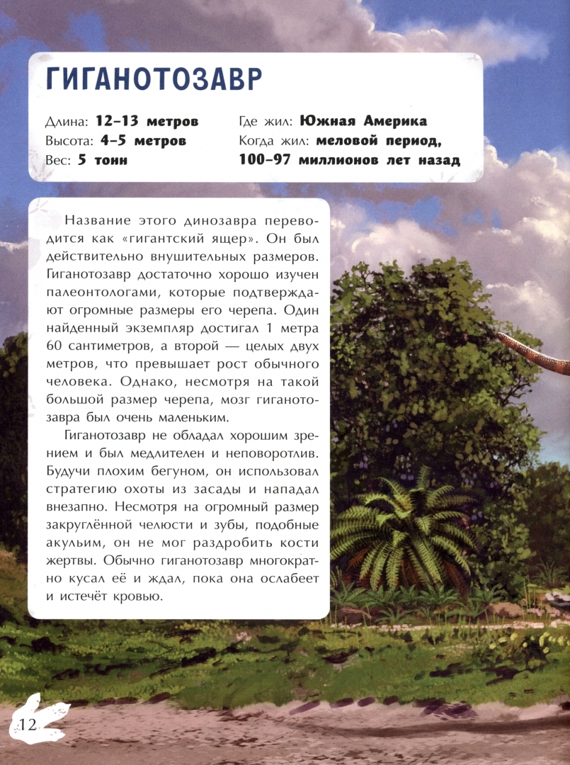 Миллионы лет назад нашу планету населяли удивительные существа. Благодаря учёным-палеонтологам современные люди всё больше узнают о том, каким был животный мир в доисторические времена. До сих пор в толще земли находят окаменелые остатки динозавров, тщательно изучив которые открывают новые виды. Многие находки были обнаружены случайно далёкими от науки людьми при строительстве дорог, мостов и зданий. Конечно, остатки динозавров находили и раньше, но никто не мог определить, что это за гигантские животные. В этой книге собрано 12 самых больших плотоядных динозавров. Вы узнаете, какими они были, где и когда жили, чем питались, как охотились. Вы сможете разгадать кроссворд и филворд, где кроме динозавров спрятаны и другие животные. Вас ждёт карта доисторического мира, на которую можно наклеить наклейки с изображениями плотоядных динозавров.