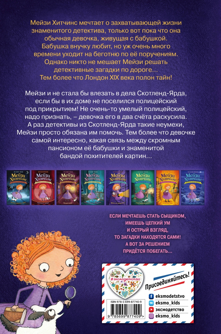 Серия книг Холли Вебб про девочку-детектива Мейзи Хитчинс уже несколько лет входит в топы продаж. Это образцовый детектив для детей - тайны, которые расследует девочка, под силу разгадать ребёнку! Здесь полно приключений, трогательных и смешных моментов и удивительных фактов из истории викторианского Лондона!