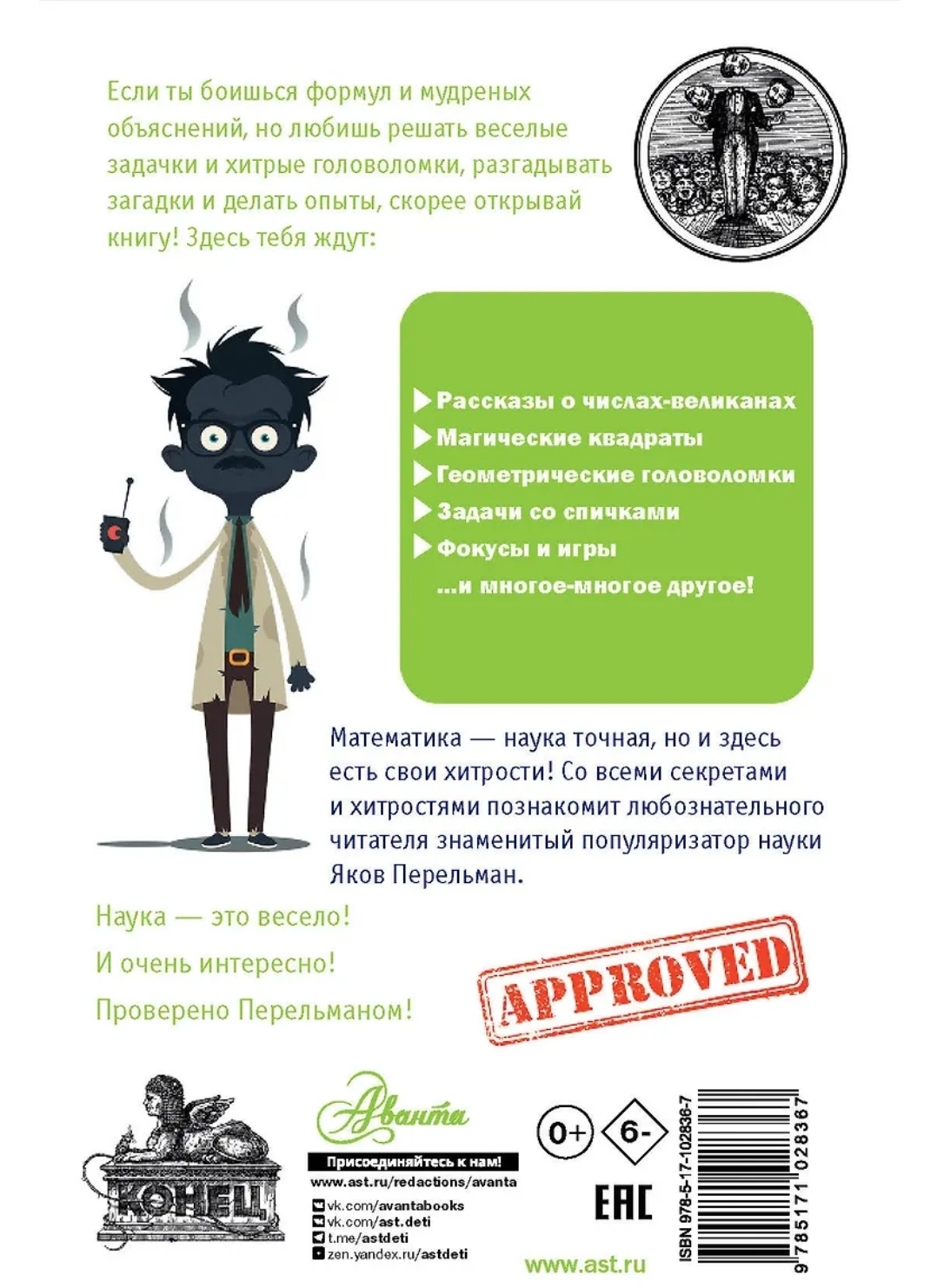С книгой известного популяризатора науки для детей Якова Исидоровича Перельмана «Живая математика» никогда не соскучишься! В ней нет примеров и правил, как в учебнике, а есть веселые и хитрые задачки на смекалку, числовые головоломки, секретная переписка подпольщиков и фокусы с цифрами...