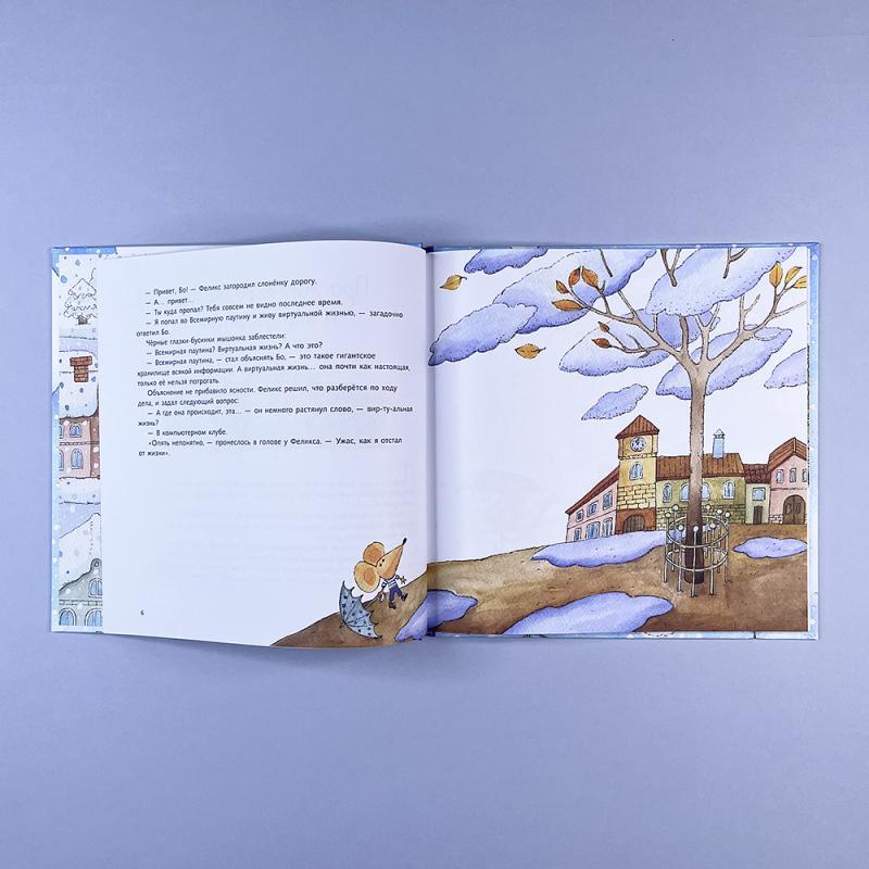 Слонёнок Бо так увлёкся компьютерными играми, что чуть не запутался во Всемирной паутине. Но мышонок Феликс всё-таки смог убедить его в том, что реальный мир гораздо интереснее виртуального. Бо с Феликсом решили сделать всему городу новогодний подарок, потом искали пропавшего зайчишку и чуть не прозевали Новый год. Добрые истории о больших и маленьких превращениях и о том, что мир полон удивительных тайн, надо просто суметь их увидеть. О приключениях слонёнка Бо и мышонка Феликса читайте также в других книгах серии "Про большое и маленькое": "Весна, "Лето", "Осень"